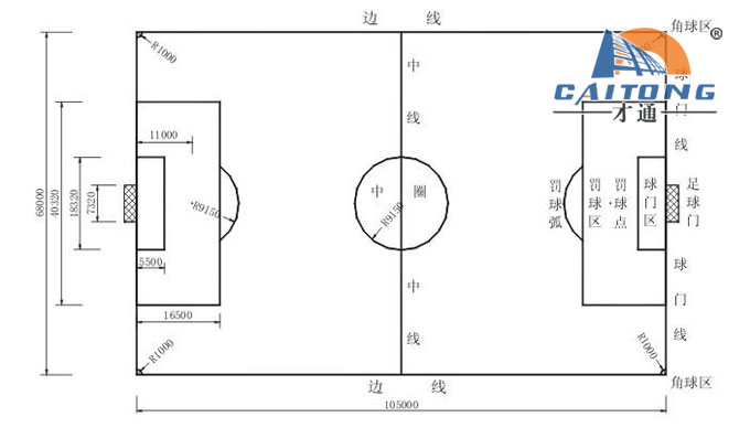 小禁区(球门区):长18.32米、宽5.5米,在底线距离球门柱5.5米;
